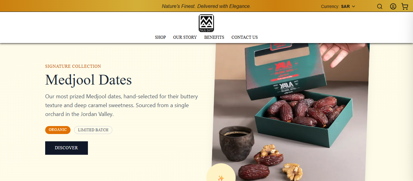 Modern online shop for organic dates with product browsing, cart management, and secure checkout. Built with Next.js, Prisma/PostgreSQL, and Stripe.